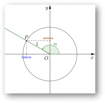 Círculo trigonométrico; Seno; Cosseno; Ângulo generalizado.